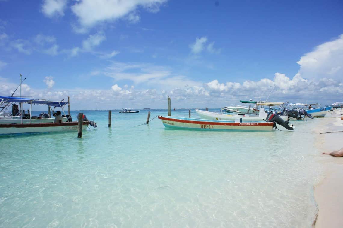 La traversée de 7km n’est pas longue. Une petite demie-heure en pirogue ou petit bateau suffit pour traverser la baie de Cancún et se rapprocher du paradis. La couleur de l’eau est déjà frappante. Un bleu turquoise tirant plus sur le bleu que le vert, et une écume d’une blancheur immaculée.