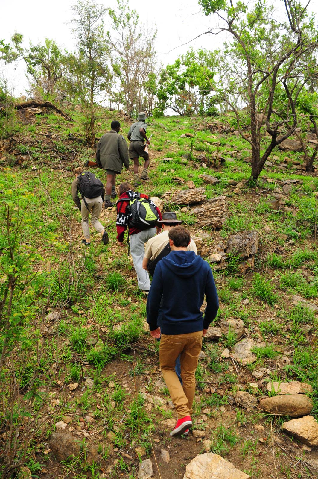Shhhhhh! Two rhinos over there », sussure notre guide en pointant du doigt une masse grise au devant. En file indienne, nous nous tapissons dans la végétation encore humide de la nuit.